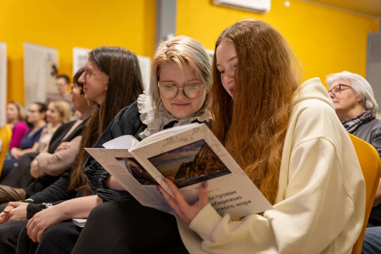 Желающих узнать о комплексном проекте было так много, что главный зал библиотеки едва вместил всех гостей. Воплощая задуманное, команда провела колоссальную работу – съемки в Магадане, сбор фотодокументов о колымской столице и экскурсии по городу, поездки в музеи Владивостока, Сибири и Алтая, где добывали информацию краеведческого характера, сведения о жизни и деятельности биолога.
