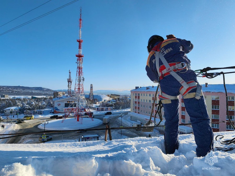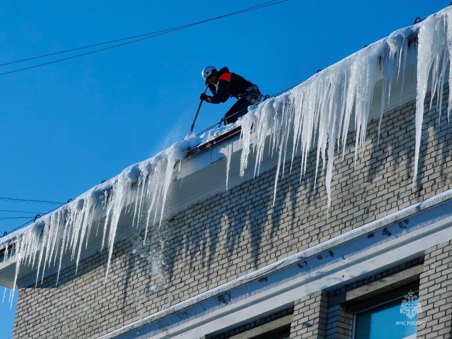 Спасатели напоминают магаданцам, что не следует подходить близко к домам, где свисают массивные снежные массы и ледяные образования.