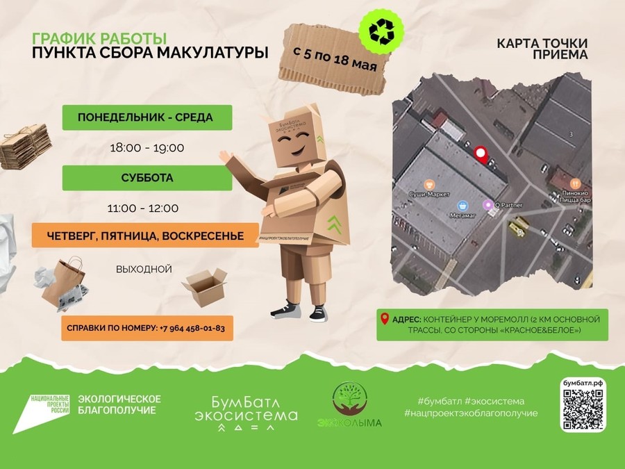 Точки приема макулатуры – контейнер у ТЦ «МореМолл» на 2-м километре основной трассы.