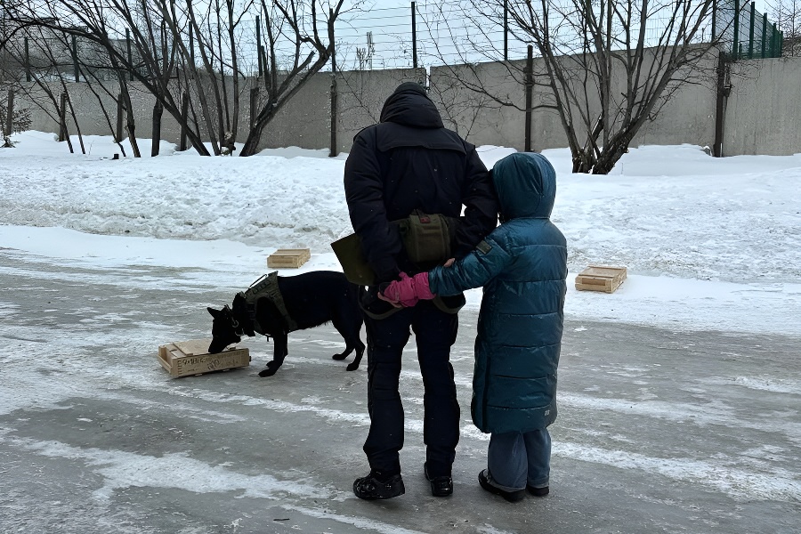 «Собаки для поиска взрывчатых веществ, оружия и боеприпасов обучаются пассивному сигнализирующему поведению. Это значит, что животное должно сообщить об обнаружении подозрительного предмета позой тела, а не лаем», — пояснил омоновец.
