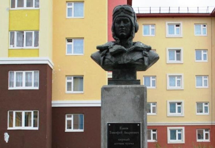 Тимофей Елков родился в 1914 году в Уэлене, он был членом первого аэроклуба Чукотки. В самом начале войны обслуживал авиатрассу в аэропорту на мысе Шмидта, по которой летчики перегоняли ленд-лизовские самолеты из США. Как только началась Великая Отечественная, он просился добровольцем на фронт. В 1944 году его направили в Сасовское авиационное училище, которое он тогда же и окончил.