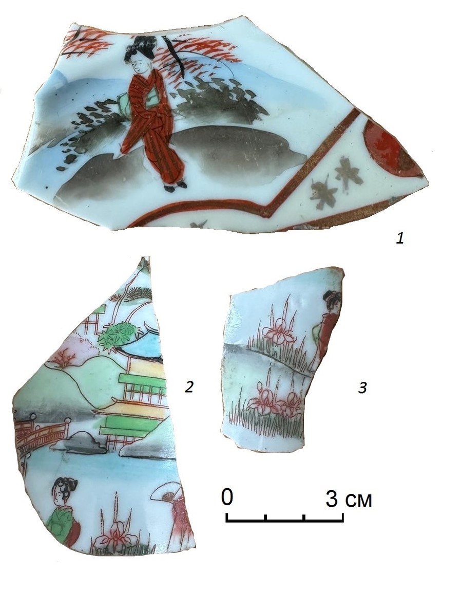 «Было проанализировано 203 фрагмента от 21 изделия, на которых имелись клейма производителя, а также рисунки с типичными для Японии сюжетами. Выделены чайные блюдца, тарелки, кружки, сахарница, стакан, горшки для растений. Все находки приурочены к верхнему культурному горизонту, археологический материал которого относится к позднему этапу функционирования города (XIX - первая половина XX века)», - рассказал он.