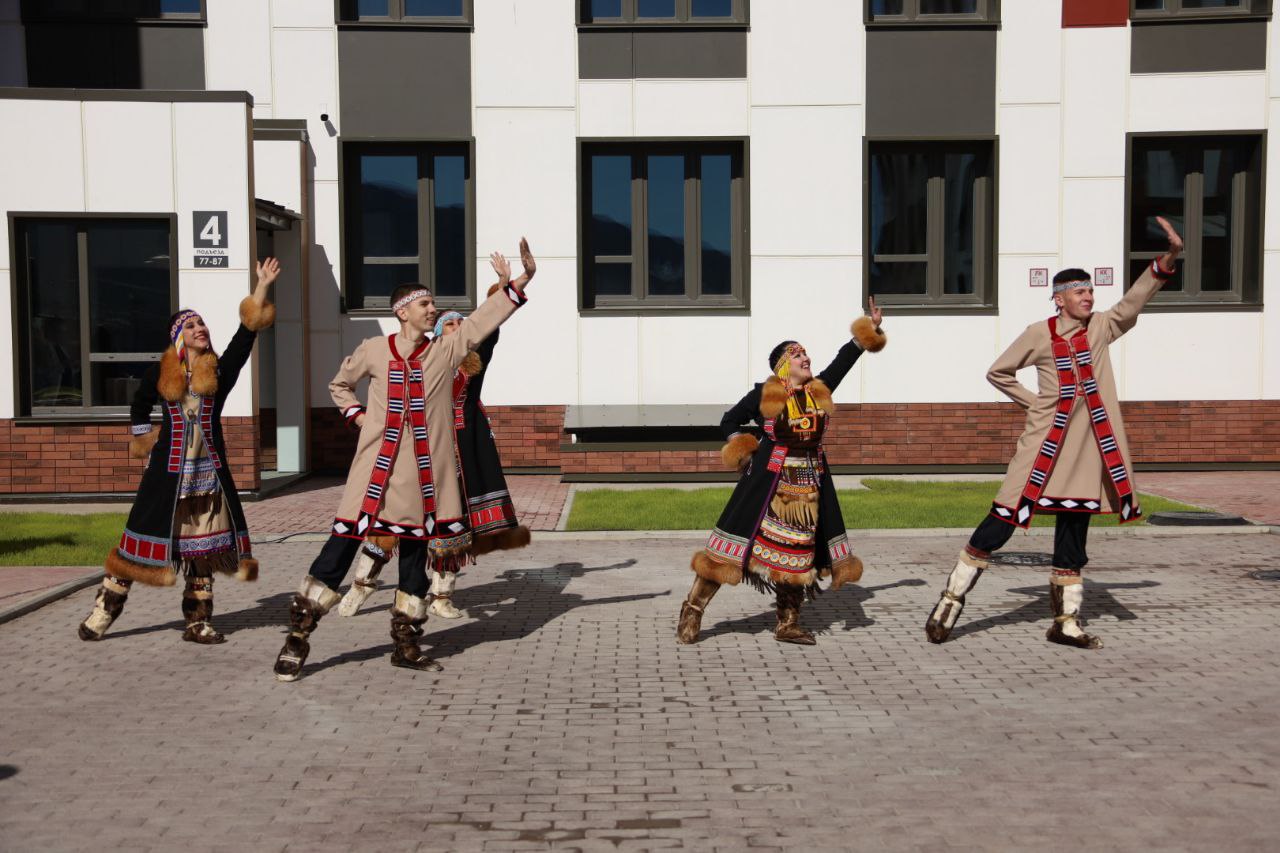 Атмосферу праздника постарался создать и ансамбль песни и танца народов Севера «Энер». Под звуки ярара коллектив спел песню с пожеланиями, чтобы первые счастливчики вошли в новую жизнь с чистыми и бодрыми помыслами.