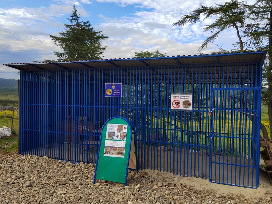В правом углу вольера поставят небольшую будку и наполнят ее песком, чтобы Хась мог сделать себе нору, как это водится у его собратьев в дикой природе. Чтобы чувствовал себя как дома.