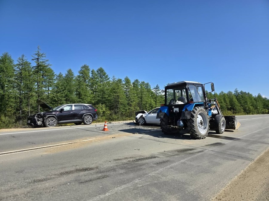 «Госавтоинспекторами предварительно установлено, что водитель автомобиля «Тойота Калдина» при обгоне совершил столкновение с трактором «Беларус» и «Тойотой Вайлдлендер». В результате дорожной аварии пострадали женщина-водитель «Тойоты Вайлдлендер», годовалый ребенок, находящийся в салоне данной иномарки, а также пассажирка «Тойоты Калдина», — рассказали в Госавтоинспекции.
