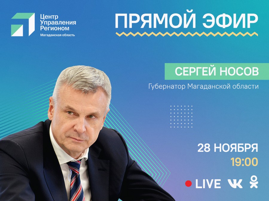 В четверг, 28 ноября, в 19.00 на телеканале «Колыма-Плюс» пройдет Прямой эфир с губернатором Магаданской области Сергеем Носовым.