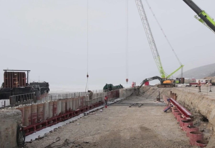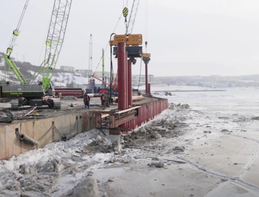 Но пока главной сложностью остаются льды. К работе в одной их самых северных судоходных бухт России пришлось приноровиться. Строители в буквальном смысле борются со льдом, который вдавливает причальную стенку к берегу. Процессу сопротивляются, используя различные приспособления, проект и технологические подходы корректируют в ходе работ.