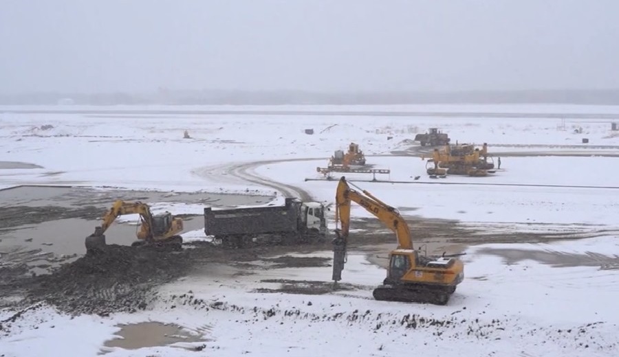 Всего на площадке трудятся 500 человек. В пути больше 100 контейнеров с материалами и оборудованием. Летом планируют полностью закрыть тепловой контур здания. В августе собираются уже приступить к высокотехнологичному монтажу. Сдать новый аэровокзал намерены уже в конце этого года.