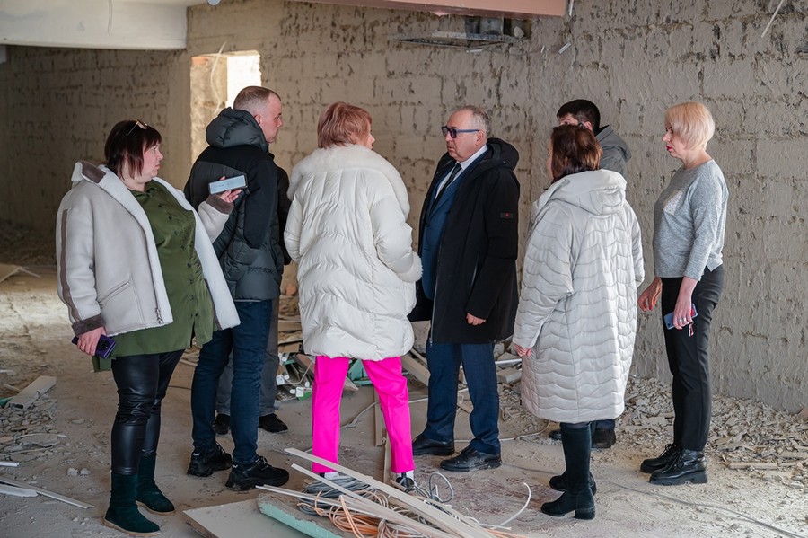 На объекте определен четкий график работы. В настоящее время задействованы почти два десятка специалистов. Трудятся на всех участках одновременно, стены, потолки, пол, электрика.