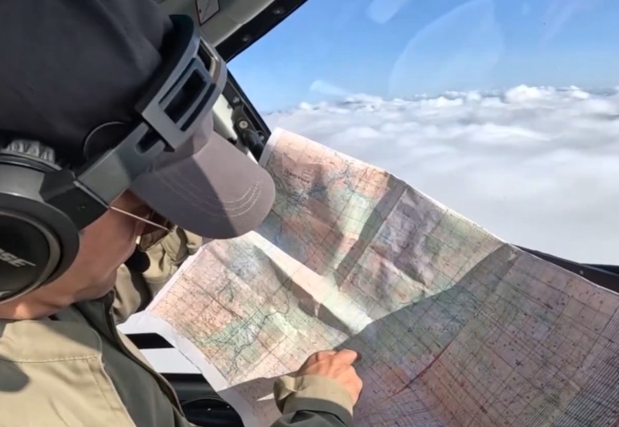 Чтобы получить достоверные данные, полеты проводят на предельно малых высотах. До земли не больше 50 метров. Скорость большая – на приборах 170 километров в час. Огибая сложный рельеф, вертолет меняет режим пикирования на кабрирование, то есть набор высоты. Такие условия полета требуют железных нервов и большого опыта. В кабине только двое: пилот и оператор оборудования.