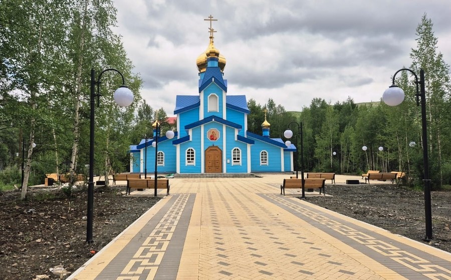 Местные жители уже оценили по достоинству новую облагороженную территорию вокруг православного храма Иверской иконы Божией Матери в поселке Ягодное. В летний период подрядчиком были выполнены работы по устройству тротуарного покрытия из плитки, установке ограждений, бордюрного камня, скамеек, урн и осветительных приборов.